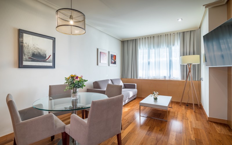 Las 3 habitaciones Junior Suite son las mejores del hotel, no solo por sus privilegiados 55 m², donde el huésped puede disfrutar de la estancia más holgada; también por la versatilidad de un espacio que cuenta con sala de estar, la cama más genuinamente reconfortante y el cuarto de baño más completo y de líneas más minimalistas. El lujo se viste en el Barceló Murcia Siete Coronas en forma de Junior Suite..