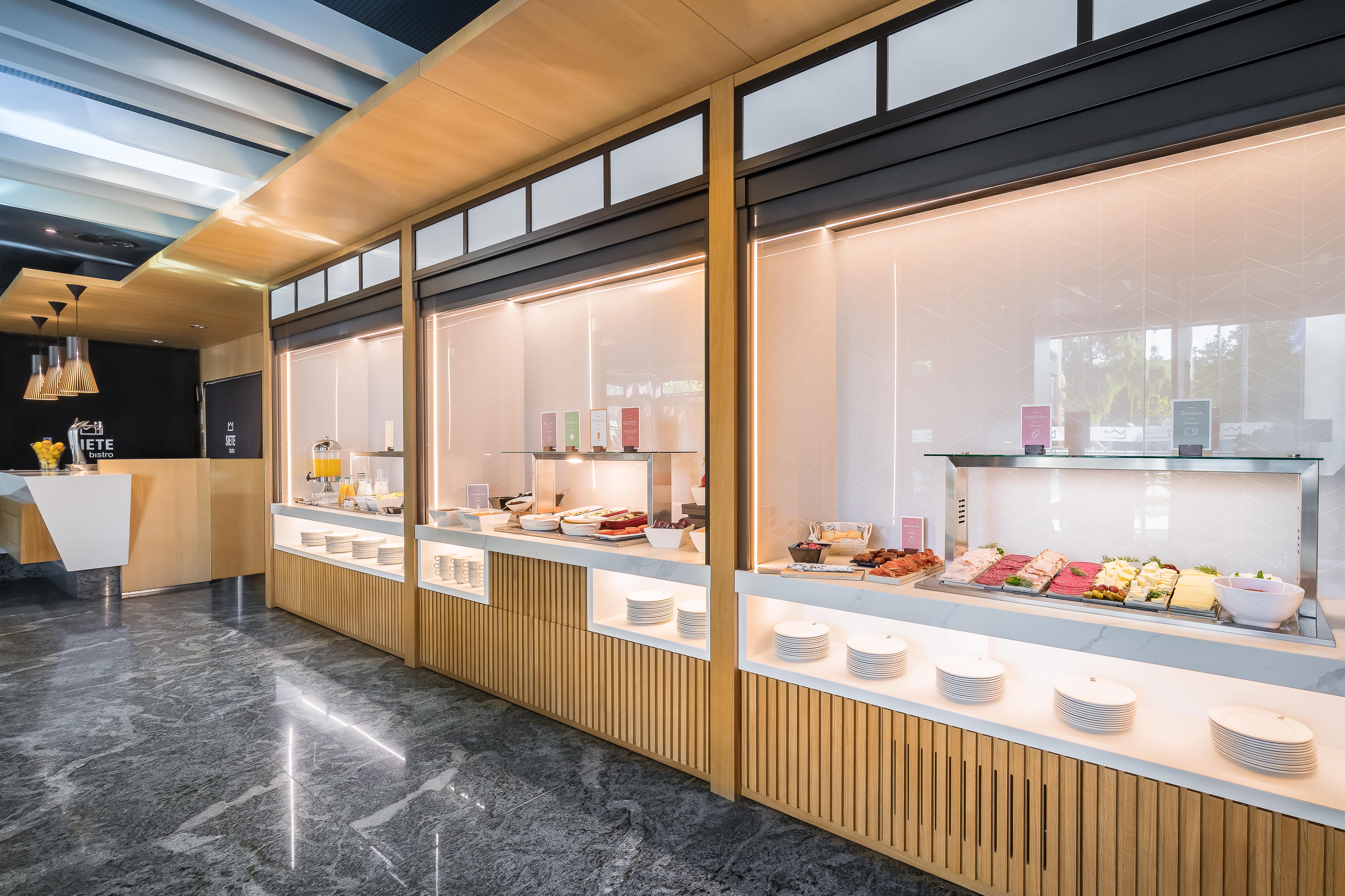 La modernidad y vanguardia del hotel Barceló Murcia Siete Coronas no se concibe sin un importante componente gastronómico protagonizado por su Bistró, especializado en cocina de temporada en la que se combinan los mejores productos artesanos de la región y de otro tipo de gastronomías.