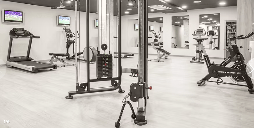Dotado de cintas para correr, bicicletas estáticas, elíptica, máquina de poleas para trabajar musculación, bancos, fitball, esterillas para yoga, toallas y vestuarios con duchas individuales.